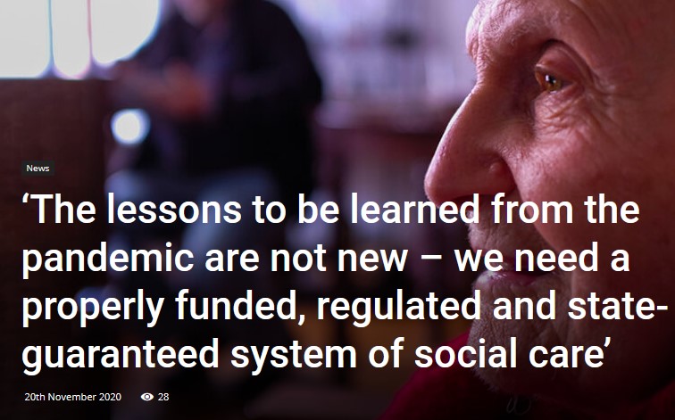 The lessons to be learned from the pandemic are not new – we need a properly funded, regulated and state-guaranteed system of social care (article on View Digital, 20 November 2020) by Ann Marie Gray, Gemma Carney and Paula Devine |