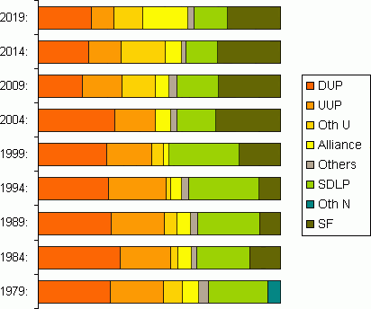 results of the seven most recent NI elections elsewhere and on a different page is a summary of NI election results since 1973.